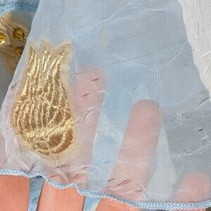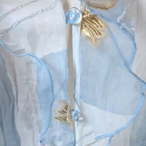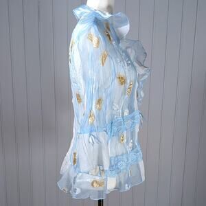 Jaipur Blue Sheer Sequin Ruffle Long Sleeve Crinkle Button Top Fairy Ribbons Med