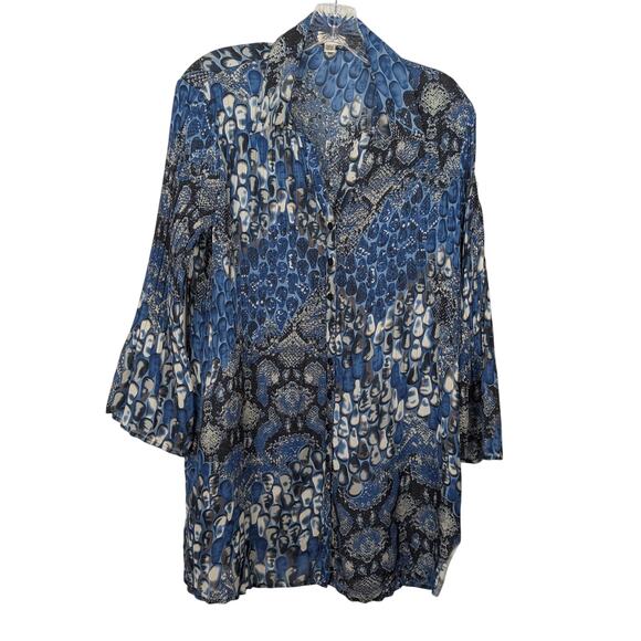 Jaipur womens blouse sz M Pleated in sections VGUC semi sheer Poly see measurements Bust to 43" Sleeves 21" Center back 31" Button down