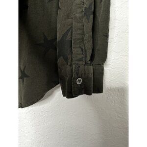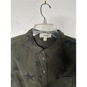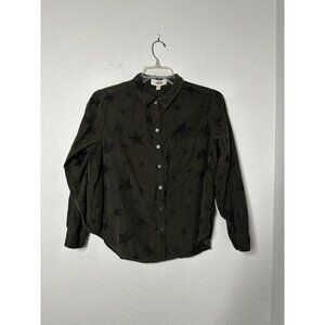 Jak & Rae Women's Lightweight Corduroy Green Olive/Black Stars Shirt Size L