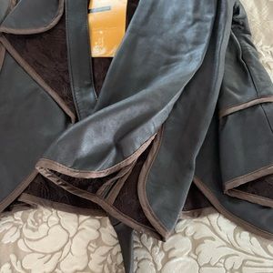 Absolutely gorgeous and unique peplum leather jacket. It’s cropped with relaxed sleeves, ties at the neck, made from soft and buttery 100% real leather. Perfect for spring!