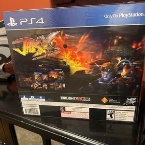 Experience high-speed action with 's Jak X Combat Racing for PS4. Featuring a striking gold and blue design, this game offers thrilling races and intense combat. Perfect for fans of fast-paced video games.