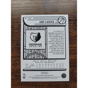 Jake LaRavia 2022-23 Panini Hoops #249 - Rookie - Memphis Grizzlies - NBA