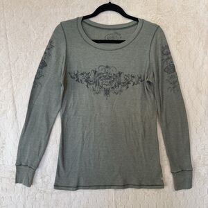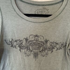 Jake’s Sage Green Rhinestones Long Sleeve L Thermal Shirt Y2K Grunge Made In USA