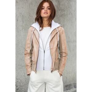 Jakett Hannah Patina Brown Leather Moto Jacket w/ White Hood Size XS NWT