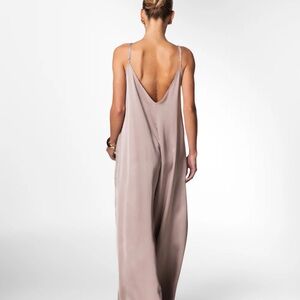 Slip into this silky number, and you’ve got relaxed refinement in one sleek package. Featuring adjustable straps for a custom fit, this piece combines luxe style with effortless comfort. The voluminous silhouette drapes beautifully, while side pockets bring laid-back charm. Our soft satin material feels incredible on skin, and has the perfect sheen. Coming in rich, wearable colour ways, this jumpsuit exudes an understated elegance worthy of the inevitable compliments.