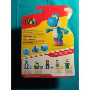 The Jakks Pacific Nintendo Super Mario - Light-Blue Yoshi + Egg 4" Action Figure is a toy inspired by the Super Mario Bros. franchise. This action figure features the character Yoshi in a light-blue color, along with an egg accessory. Standing at 4 inches tall, this figure is part of a collection of Super Mario Bros. themed toys manufactured in 2024 by JAKKS Pacific. Perfect for fans of the popular video game series, this action figure brings the playful and adventurous world of Super Mario to life.