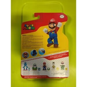 The product is a 4" action figure by JAKKS Pacific featuring Mario from the Super Mario Bros. franchise holding a 1-Up Mushroom, a power-up item from the game. This toy is based on the character's appearance from the movie "Up" and is part of the TV, Movie & Video Games theme. With a release year of 2024, this collectible item appeals to fans of the iconic video game series.