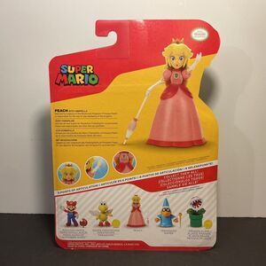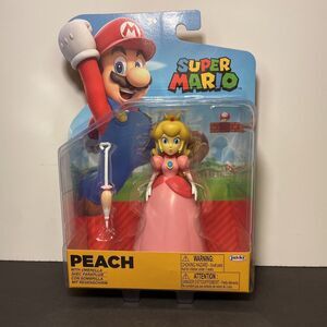 For the ultimate Super Mario Bros. fan, this Jakks Pacific World of Nintendo Princess Peach action figure is a must-have addition to your collection. With vibrant multicolor detailing and standing at 4 inches tall, this figure perfectly captures the essence of the beloved character. The figure comes complete with her signature umbrella, making it a unique and standout piece.