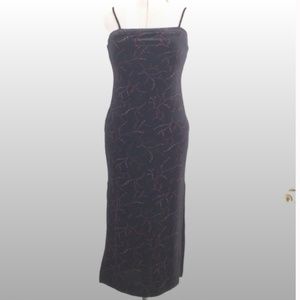 Jalate Vintage Double Side Slit Body-con Black/Burgundy Floral Print Dress