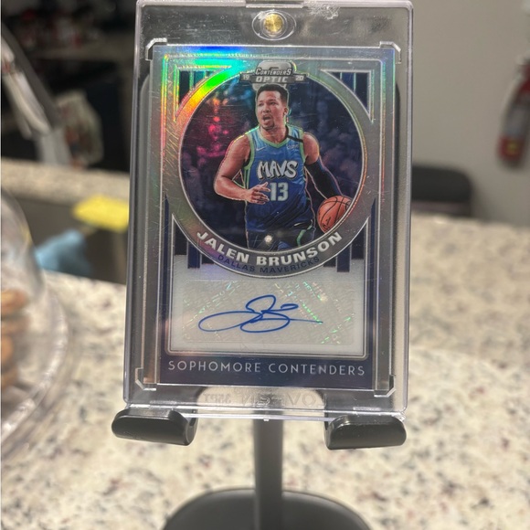 Topps trading card showcasing a player in a blue jersey. Silver highlights enhance the card's design. Features signature and 'Sophomore Contenders' label.