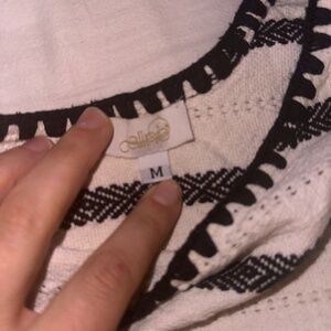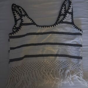 Jaline Resort Boho Crochet Fringe Black and White Top