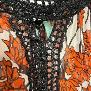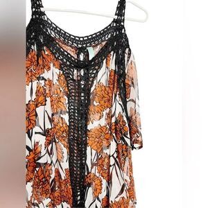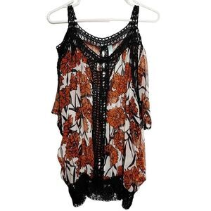 Jaloux Cold Shoulder Floral Sheer Blouse Orange Black Size Medium