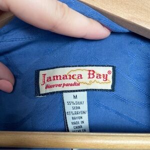 Jamaica Bay Blue Floral Button Down T-Shirt Silk Blend Sz. Medium