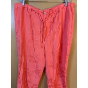 Jamaica Bay Coral Tone on Tone Floral Silk Blend Pants Petite Size XL