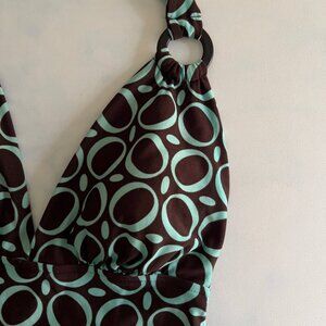 Jamaica Bay Y2K Brown & Teal Retro Halter Swim Suit Top