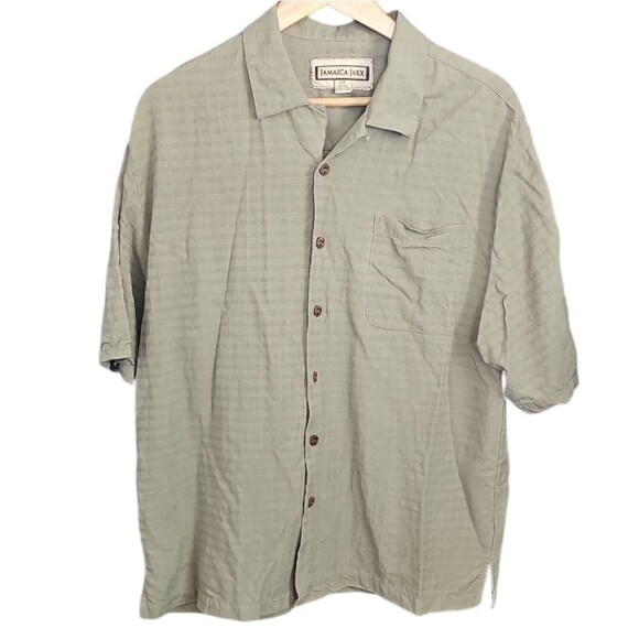 Jamaica Jaxx 100% Silk Casual Button Front Shirt Sz L Tropical Coastal Resort