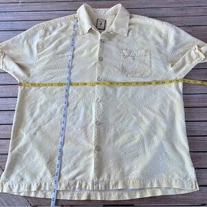 Jamaica Jaxx 100% Silk Jacquard Palm Frond Hawaiian Shirt Yellow XXL Banana Leaf