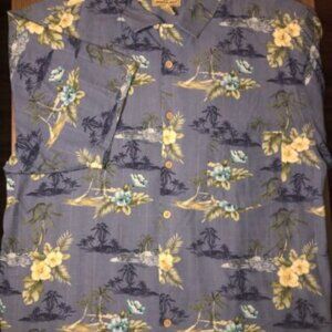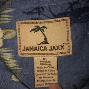 Jamaica Jaxx Button Up SILK Shirt Short Sleeve Mens Size XL Blue Hawaiian Floral