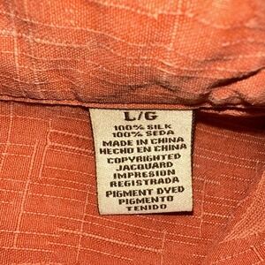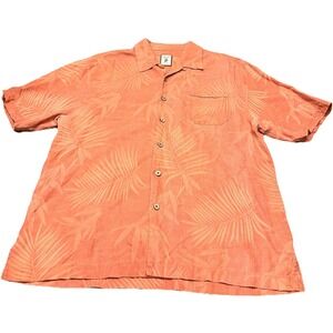 Jamaica Jaxx Coral Palm Trees Print Hawaiian 100% Silk Button Up Shirt Men's L