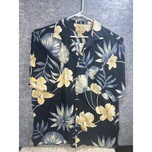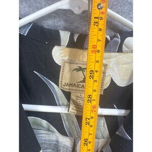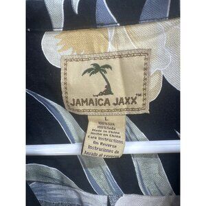 Jamaica Jaxx Mens Large Silk Hawaiian Shirt Black Floral Button-Up