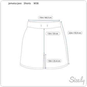 Waist = 38 inches, Inseam = 10 inches, Top to bottom = 22 inches