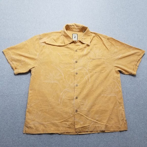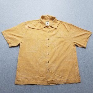 Jamaica Jaxx Shirt Mens Large Orange Hawaiian Button Up Short Sleeve 100% Silk