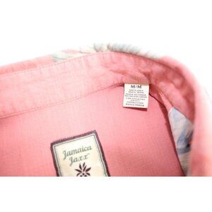 Jamaica Jaxx Tropical Silk Shirt Men's M Gray Pink Button Down Casual Fit Casual