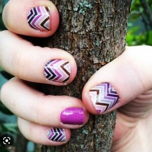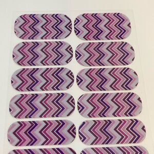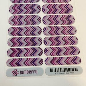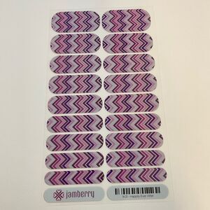 Jamberry Happily Ever After Full Sheet Nail Wraps 1K31. Sparkly wraps with chevron pattern of pink, silver and purple colors.