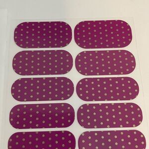 Jamberry Icy Peony Polka Full Sheet Nail Wraps 6V24. Glossy purple nail wraps with allover silver sparkly polka dot pattern. Please note, some may see this color as closer to pink.