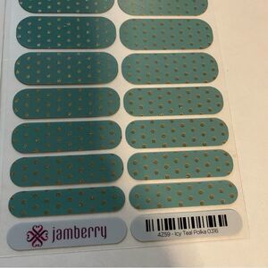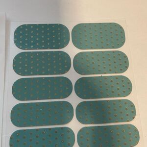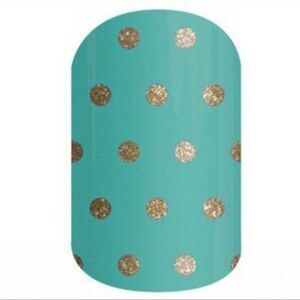 Jamberry Icy Teal Polka Full Sheet Nail Wraps 4Z59. Teal green/blue shiny nail wraps with gold glitter polka dots.
