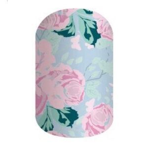 Jamberry Sweet Dreams Sleeping Beauty Full Sheet Nail Wraps 33W3. Light blue background with allover pink rose print. Part of the Disney Sleeping Beauty nail wrap collection.
