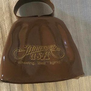 Jamboree Wheeling, West Virginia USA Brown Metal Cowbell & Brown Wooden Miniatur