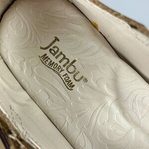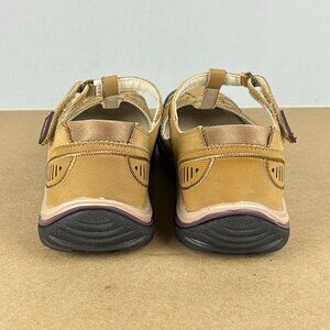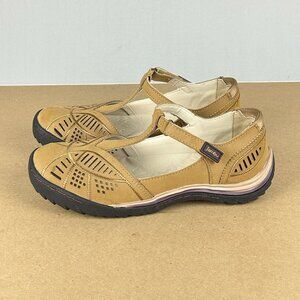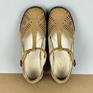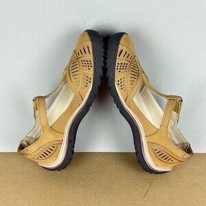Jambu Bridget Leather T-Strap Flats Womens 7.5 Tan Hook and Loop Laser Cut