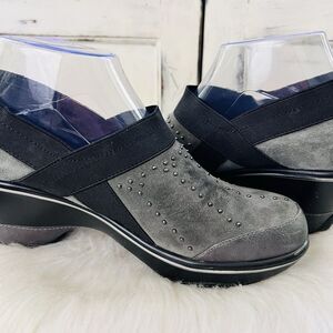 Jambu Cali-Studs Gray Leather Short Wedge Comfort Shoes - Size 7.5