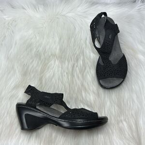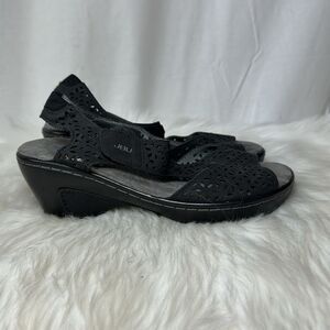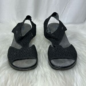 Jambu Chloe Vegan Black Cutout T-Strap Wedge Sandals Sz 6