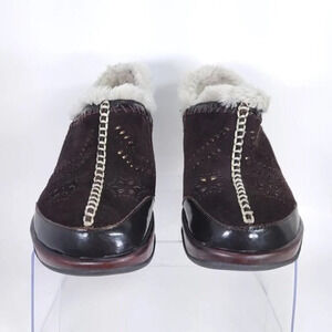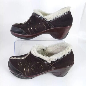 Jambu JBU J-41 Capri Brown Leather Slip On Faux Fur Lined Clogs Womens 9 Winter