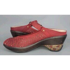 Jambu Journey Encore Leather Mary Jane Shoes 8.5 M Red Open Toe Clogs Slip On