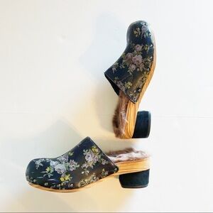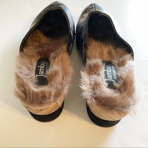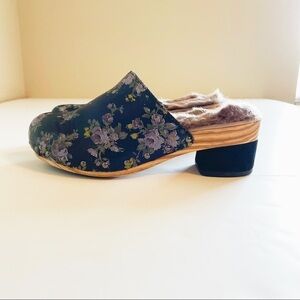 Jambu Monaco Leather Mule Clog Slide Floral Fuzzy Lined Size 6.5