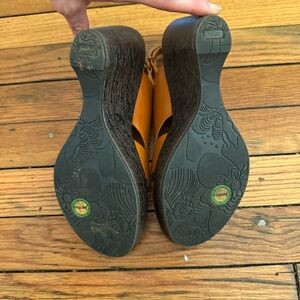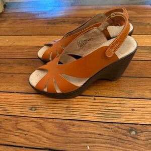 Jambu tan and brown platform shoes. The medium-height wedge heel offers comfort and elevation, while the durable platform sole ensures stability. Great condition.