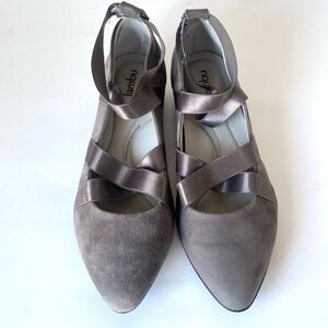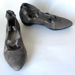 Jambu Tope Gray Leather Ballet Flats Ribbon Detail size M US 8