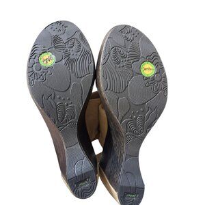 Jambu Womens Tan & Orange Wedge Sandals With Ankle Strap 10
