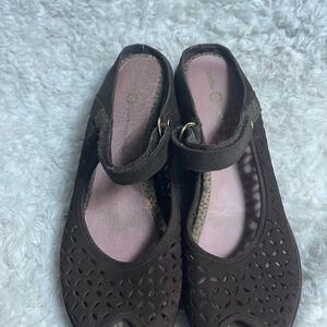 Jambu leather suede lazer cut Brown Peep Toe Mary Jane wedge Sandals SZ9.5M . Pre owned in good used condition normal wear.see all pictures any questions please message.E1