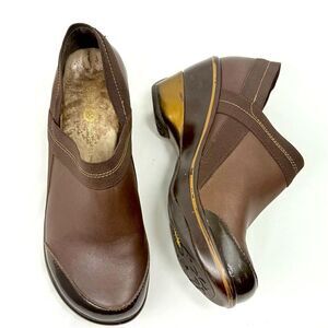 Jambu Sport Wedge CALI Brown Leather Slip On Heeled Support Shoes