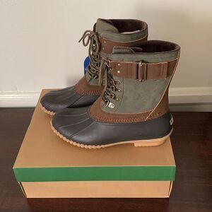 Size 7,5The classic duck boot is updated with a vegan nubuck leather upper and comfortable memory foam insoles.