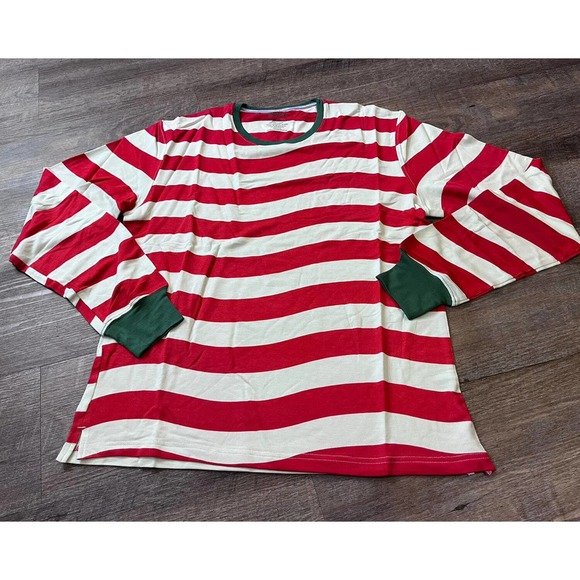 Jambys Mens Pajama Top Size Small Red and White Stripe Longsleeve O5