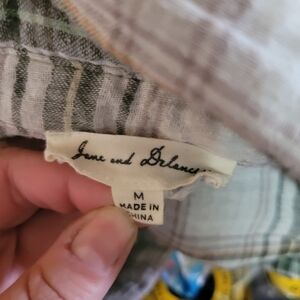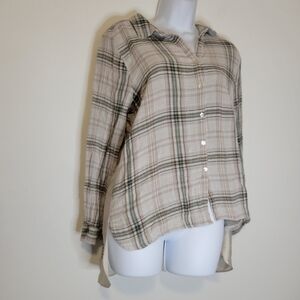 jane and delancey green plaid long sleeves button down hi-low top with embroidered back. pre owned no rips or stains.