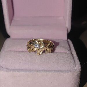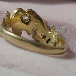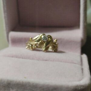 James Avery 14K Yellow Gold Diamond Ring Love Bird Leaf Design Size 5 Vintage