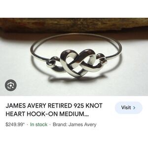 Authentic James Avery 925 Knot Heart Hook-On Bracelet .