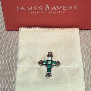 James Avery Retired Green Stone Mosaic Tile Enamel 925 Sterling Silver Cross. Great pre-owned condition, normal signs of wear, please review all pictures,. Missing jump ring, but it can be replaced at any James Avery retail location, or you can add your own. Comes with JA box and felt pouch