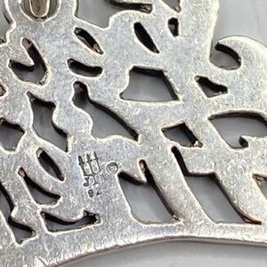 Sterling silver, good used condition. Some light wear, stamp is deep on one side, worn on the other, loop has been cut.